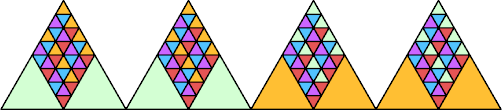 Many of these tilings first appeared in Erich Friedman's Math Magic for August 2010, which also shows irreptilings for polykings. For irreptilings of shapes other than polykings and polymings, see Math Magic for October 2002.