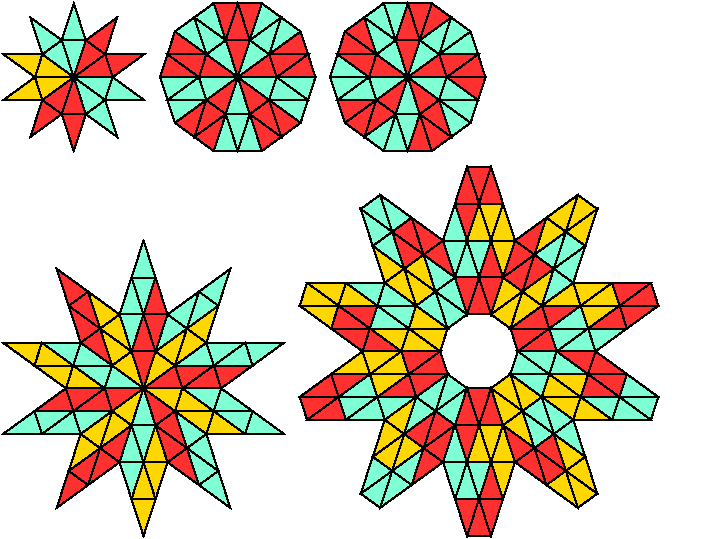 Here are minimal known Baiocchi figures for polygolds with from 1 to 4 cells. Not all these solutions are uniquely minimal.