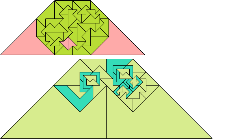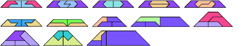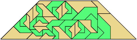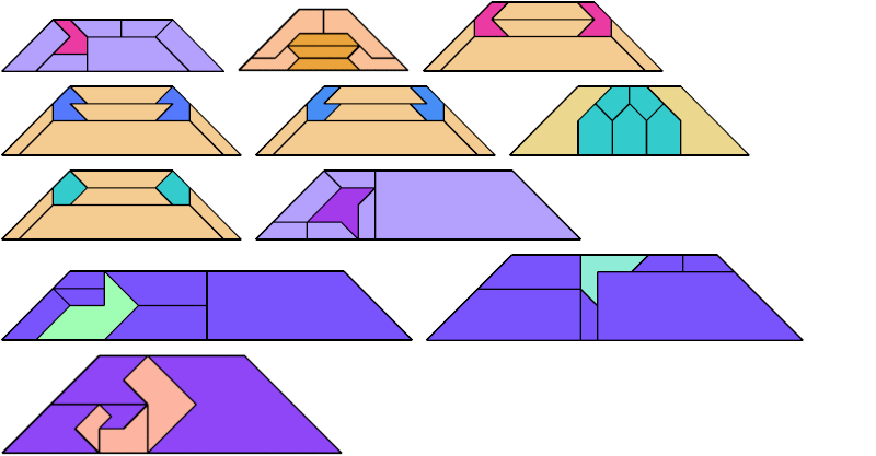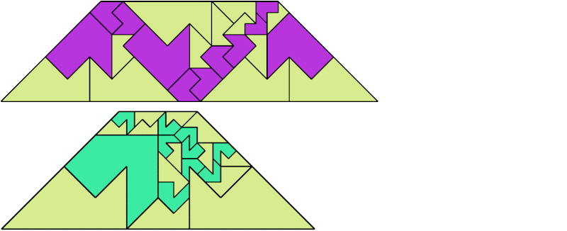 Theoretically, scaled pentabolo 24 and any other scaled pentabolo can together tile an isosceles trapezium. I do not have tilings for all such pairs of scaled pentaboloes.