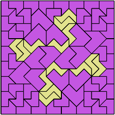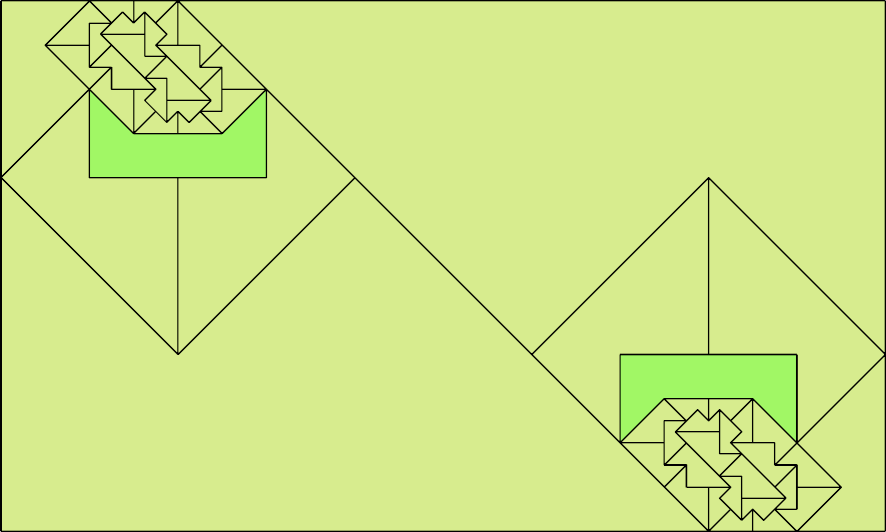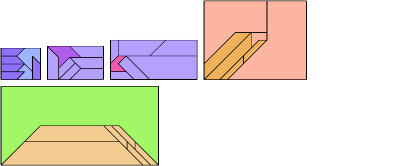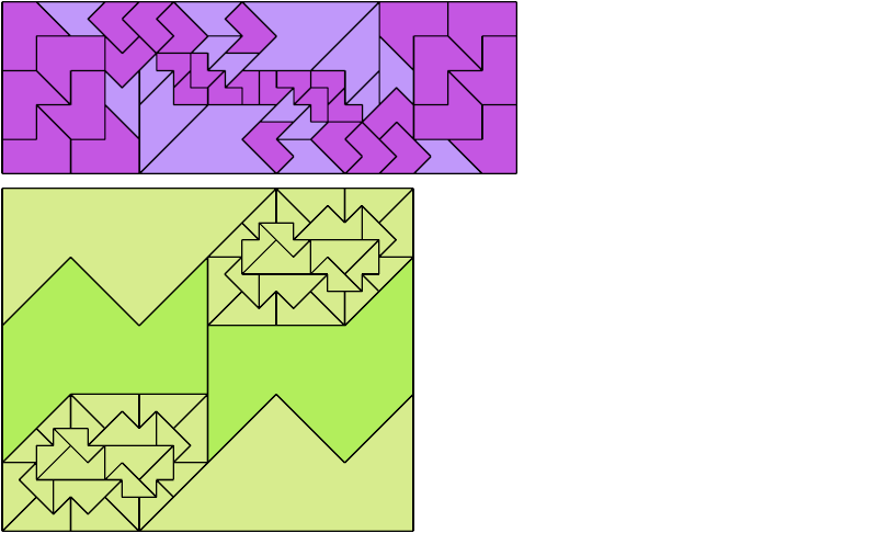 Here I show a minimal known rectangle that can be tiled by a pair of scaled pentaboloes, using at least one copy of each. If you find a solution with fewer tiles or solve an unsolved case, please write.