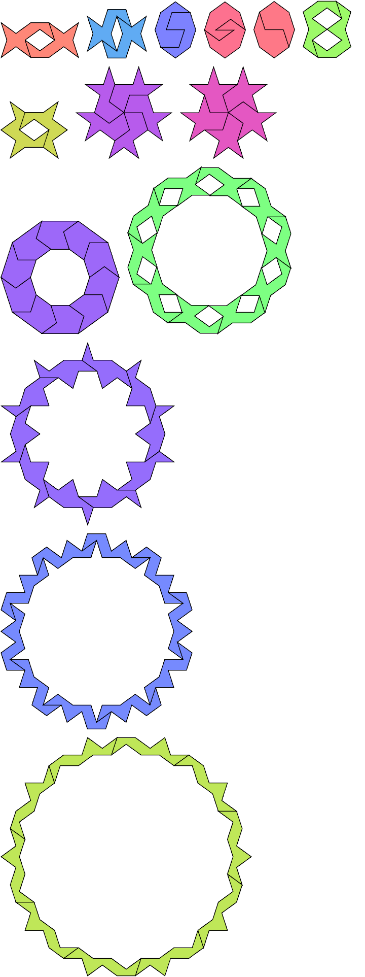 Here I show all known minimal Galvagni Figures for polycrowns with 1, 2, or 3 cells. If you find a Galvagni Figure for another polycrown, please write.