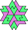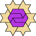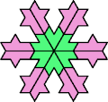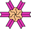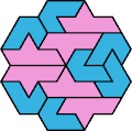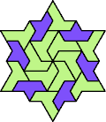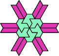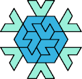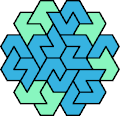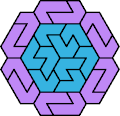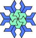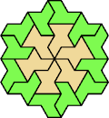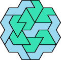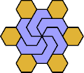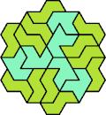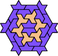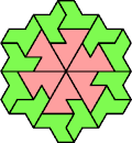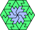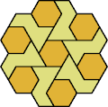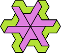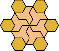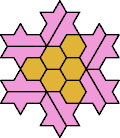 Here I show the smallest polyiamond with full symmetry and no holes that can be tiled by a hexiamond and a heptiamond, using at least one copy of each. The solutions shown are not necessarily uniquely minimal.