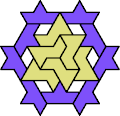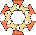 Here I show the smallest polyiamond with full symmetry that can be tiled by a hexiamond and a heptiamond, using at least one copy of each. The solutions shown are not necessarily uniquely minimal.