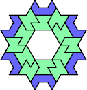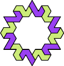 A Baiocchi Figure is an arrangement of copies of a polyform to achieve the highest symmetry class for its type of polyform. For polyiamonds, this means 12-fold symmetry, 6-rotary and mirror.