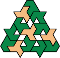 A tri-oddity is an arrangement of copies of a polyform with ternary rotary symmetry or better, using a number of copies that is not a multiple of 3.