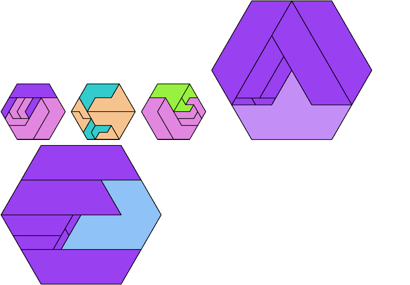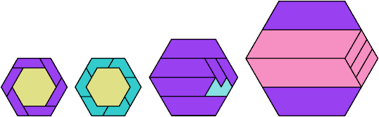 This table shows the fewest tiles known to be able to tile a regular hexagon.