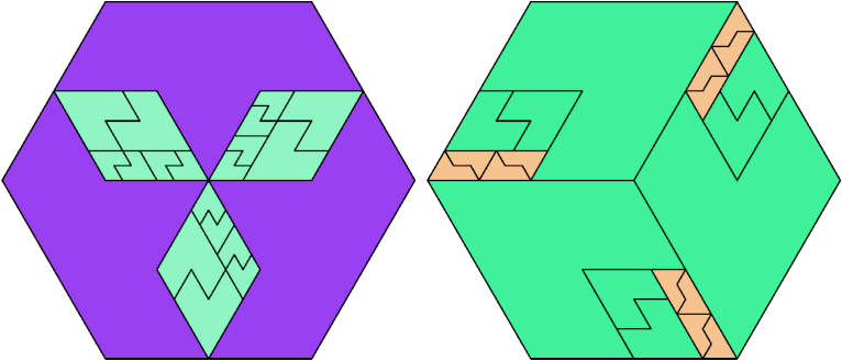 • Tiling a Regular Hexagon with a Scaled Pentiamond and Hexiamond