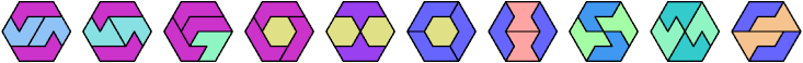 This table shows the fewest tiles known to be able to tile a regular hexagon.