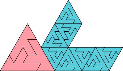 See also Polydrafter Irreptiling. For irreptilings of polyforms other than polyiamonds, see Erich Friedman's Math Magic for October 2002.