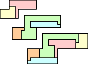 Here I show only dissections of the monomino, domino, trominoes, and tetrominoes. For dissections of pentominoes, see Globular 3-4-5 Pentomino Dissections.