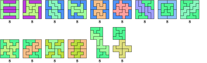 The green indexes are links to tilings by the specified tetromino alone.