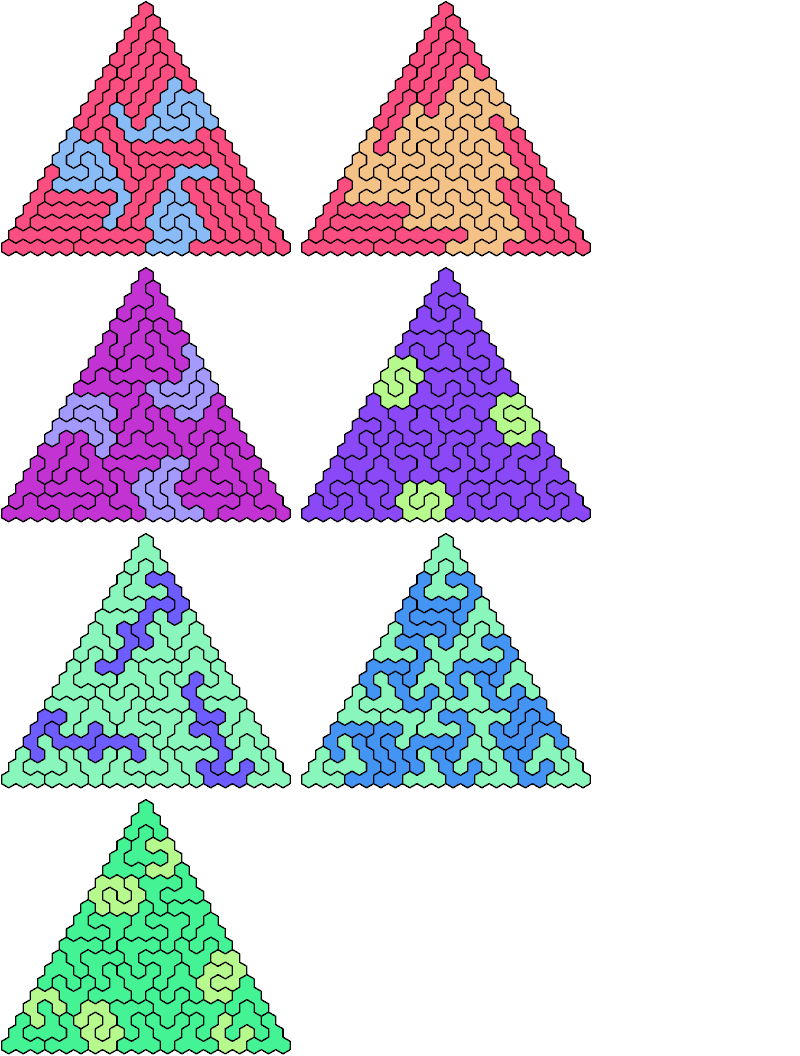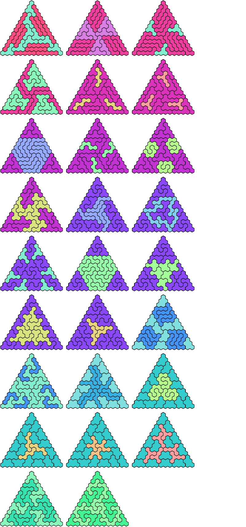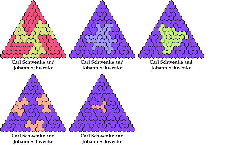 In March 2003, Erich Friedman's Math Magic studied the problem of arranging copies of a single polyhex to form a triangular polyhex.