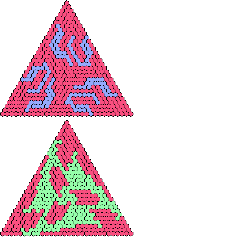 Here I study the related problem of arranging copies of two pentahexes to form a triangular polyhex. All the triangular polyhexes shown are the smallest known. Thanks to Johann Schwenke and Carl Schwenke for suggesting this problem.
