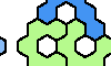 Tiling a Badge with Separated Copies of Three Pentahexes. Tile a polyhex badge with copies of three pentahexes so that no congruent pentahexes touch.