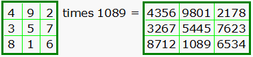The Luo Shu multiplied by 1089 gives us a magic square with the magic sum of 16385.