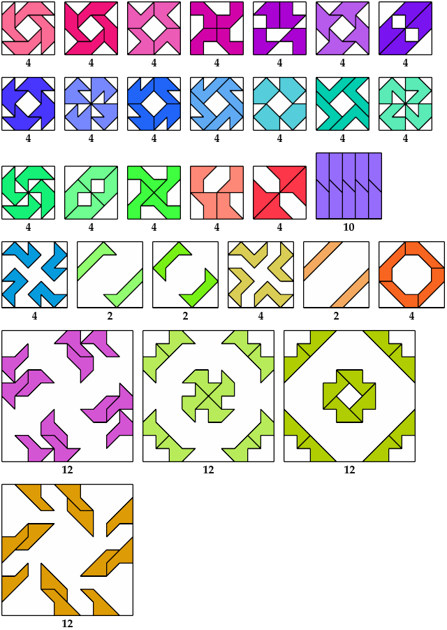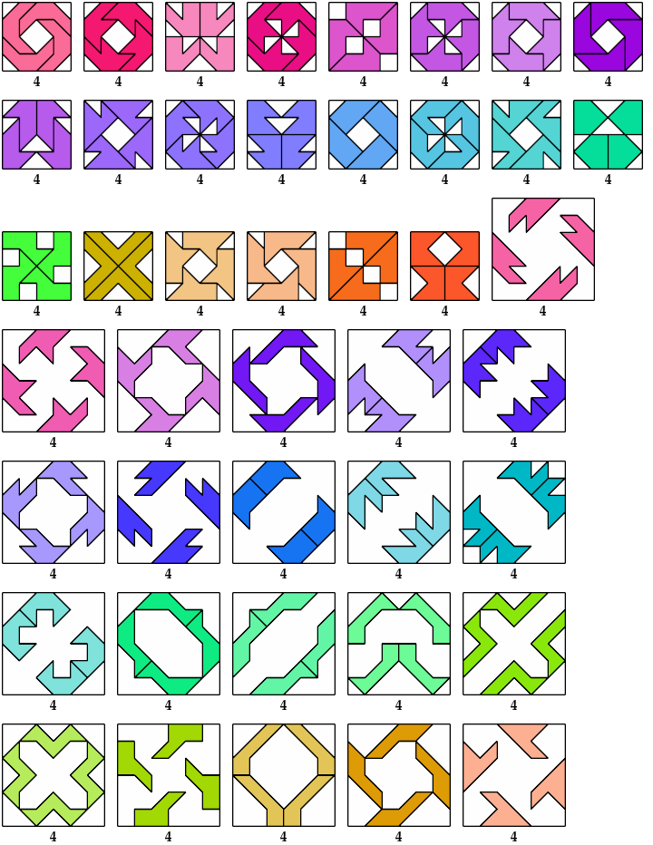 A polyomino magic square is a square grid in which copies of a given polyomino
