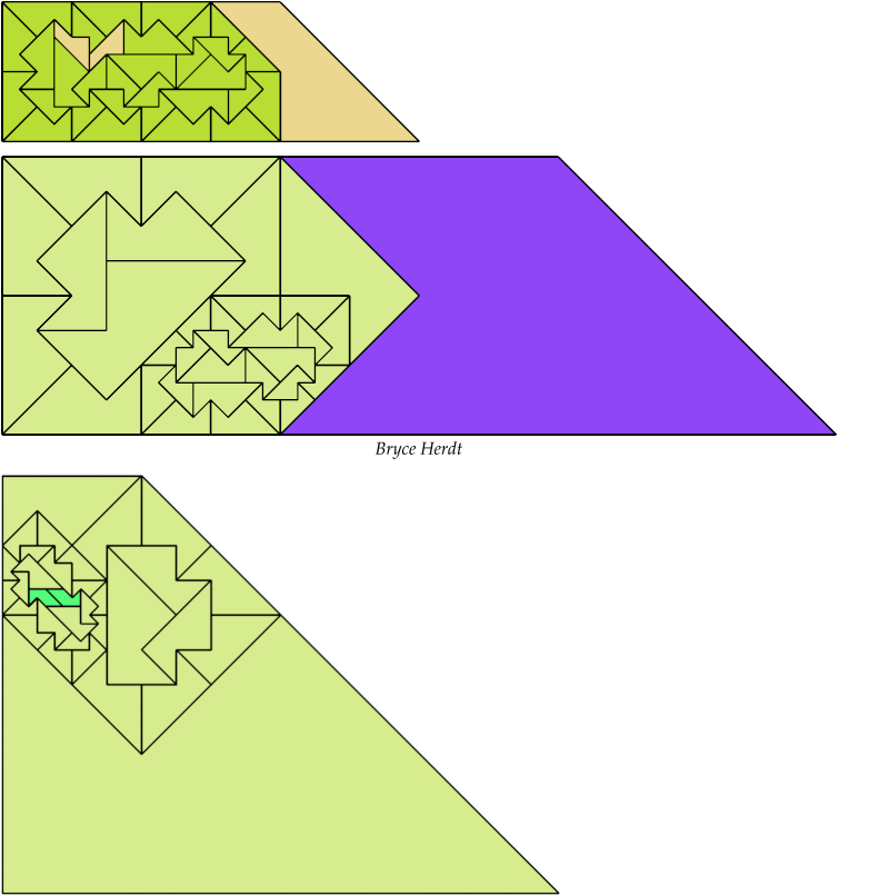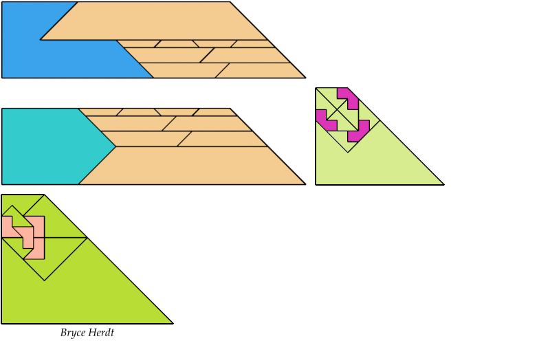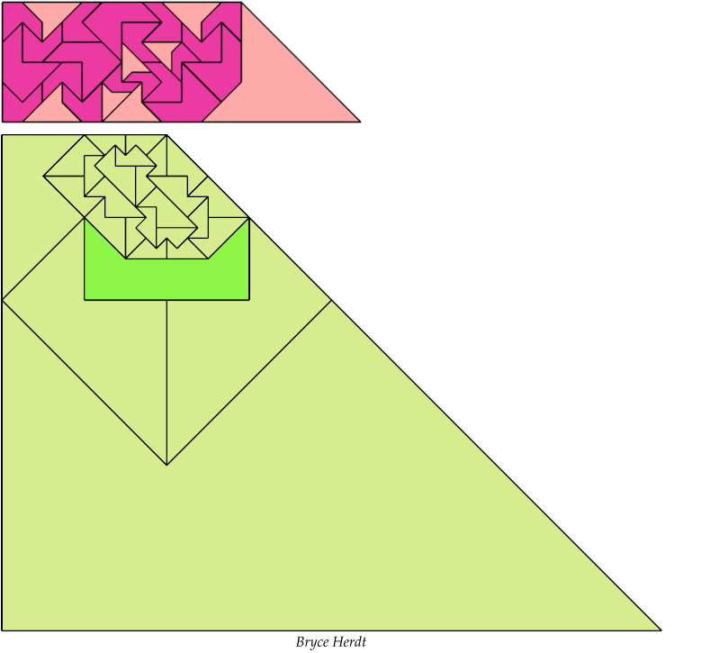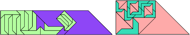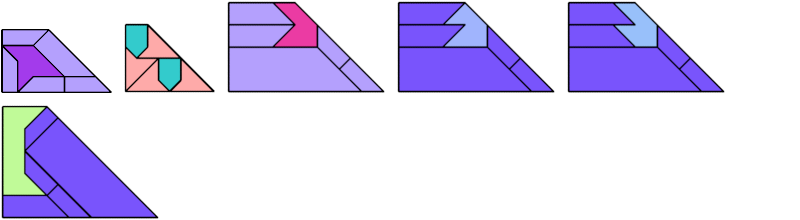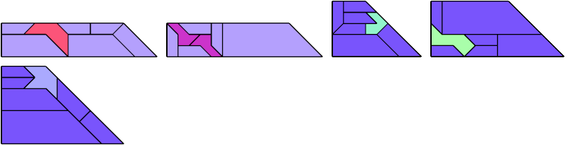 Theoretically, scaled pentabolo 24 and any other scaled pentabolo can together tile a trapezium. I do not have tilings for all such pairs of scaled pentaboloes.
