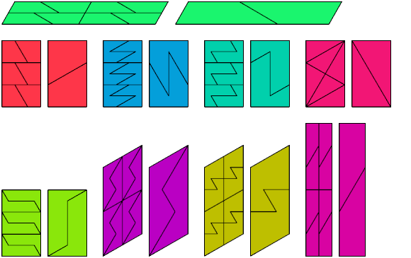 Few polyforms of any kind form reptiles. A bireptile is a figure of which copies can be joined to form two joined, equally enlarged copies of the original figure.