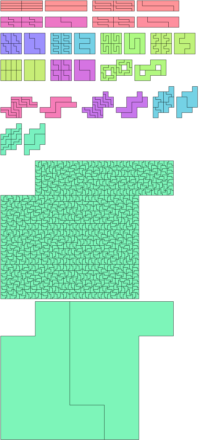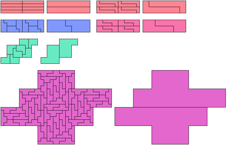 Few polyforms of any kind form reptiles. A bireptile is a figure of which copies can be joined to form two joined, equally enlarged copies of the original figure.