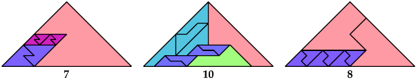 The tilings shown use as few tiles as I know how, and are not necessarily unique under this condition. If you find a tiling with fewer tiles, please write.