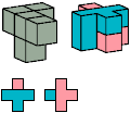 In Kate Jones's nomenclature and mine, flat pentacubes bear Solomon Golomb's names for the corresponding pentominoes. In Donald Knuth's nomenclature, flat pentacubes bear John Conway's names for the corresponding pentominoes.