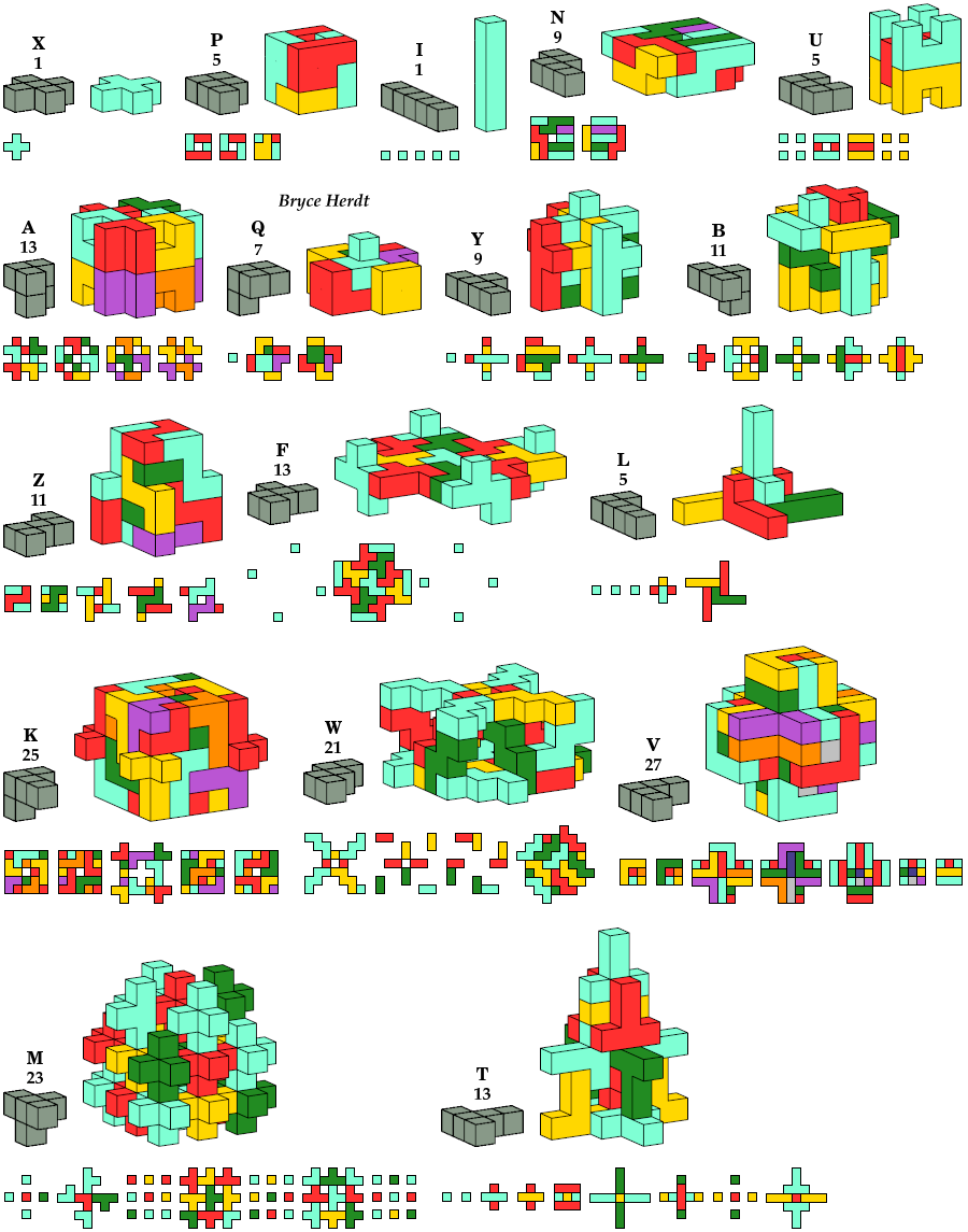 A pentacube is a solid made of five cubes joined