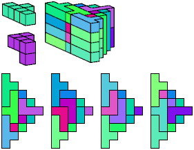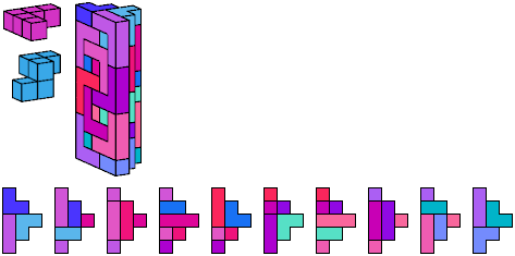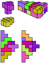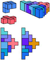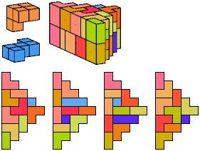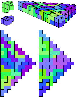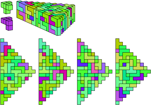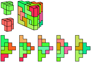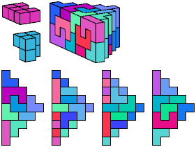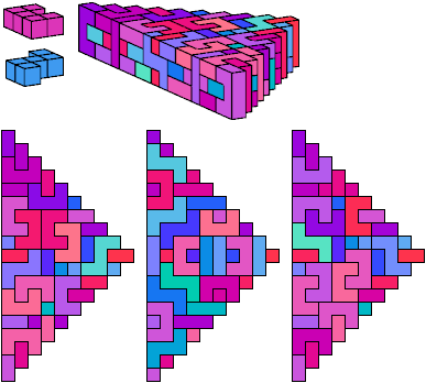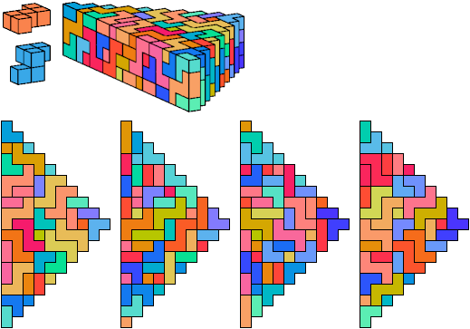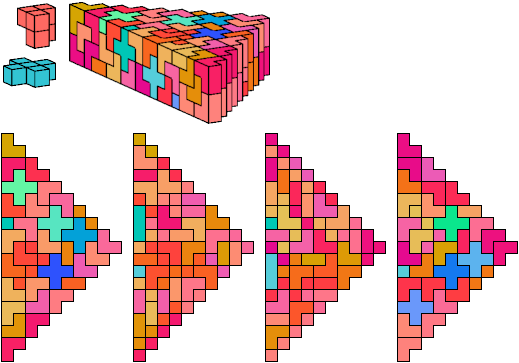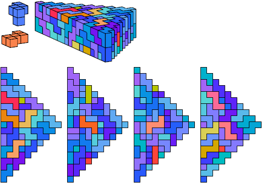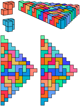 See also Tiling Triangular Prism Polycubes with Two Pentacubes and Tiling Diamond Prism Polycubes with Two Pentacubes.
