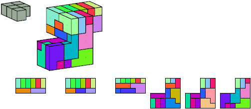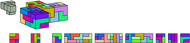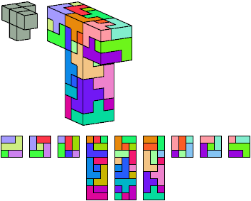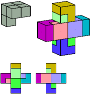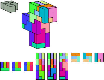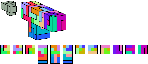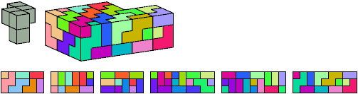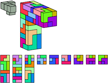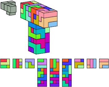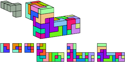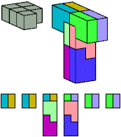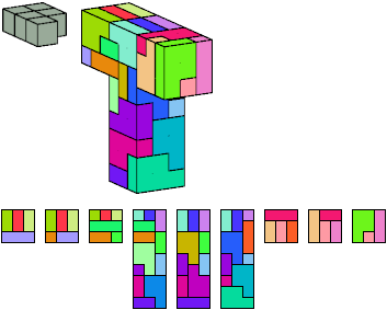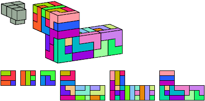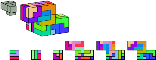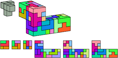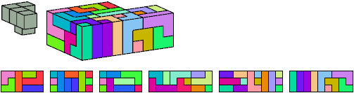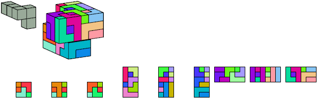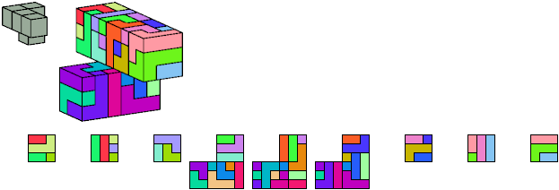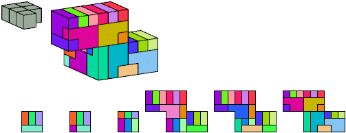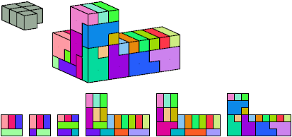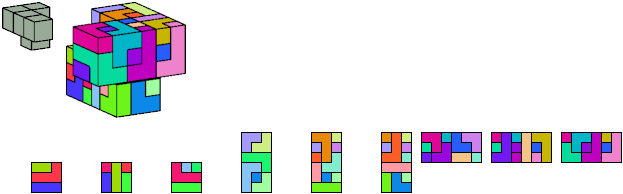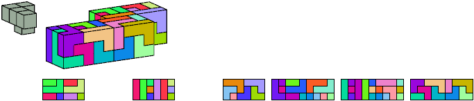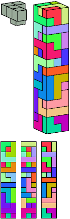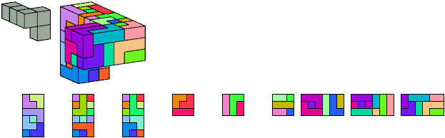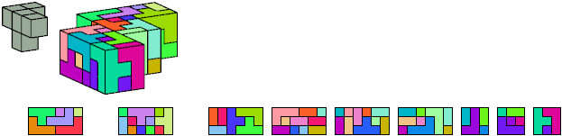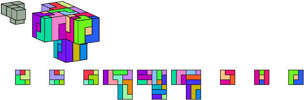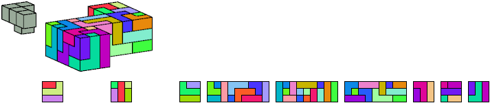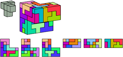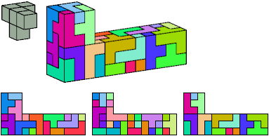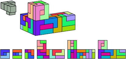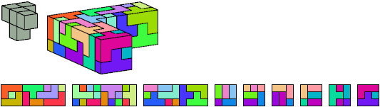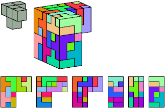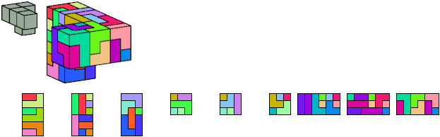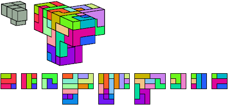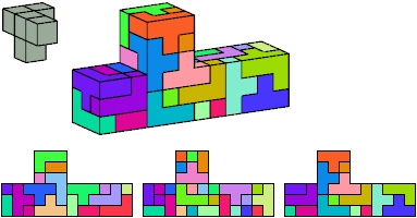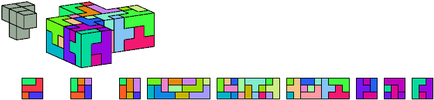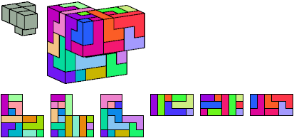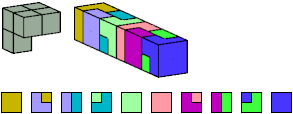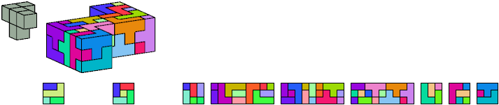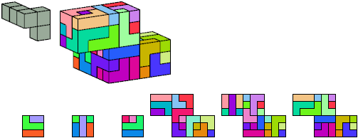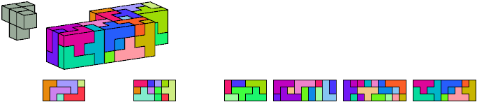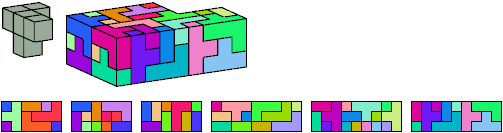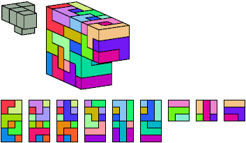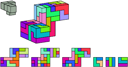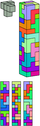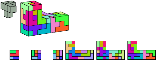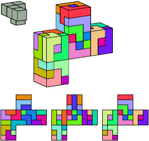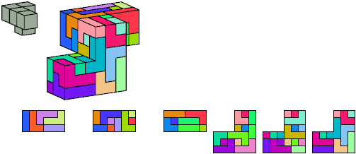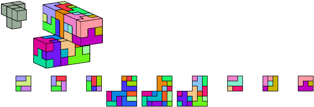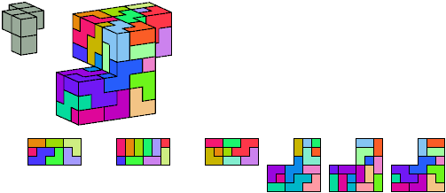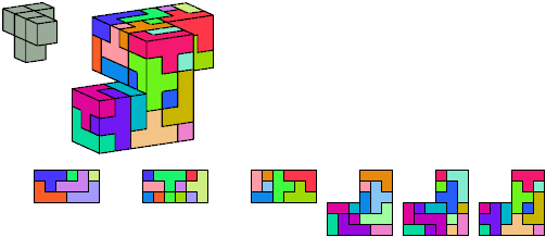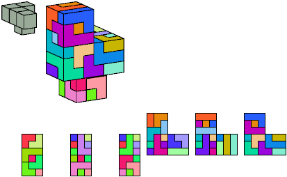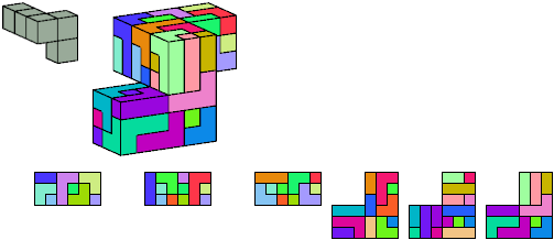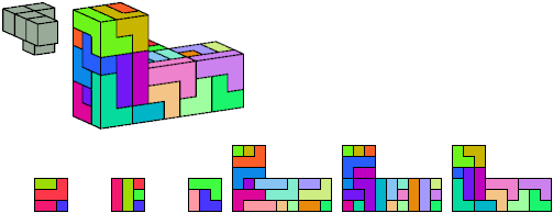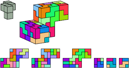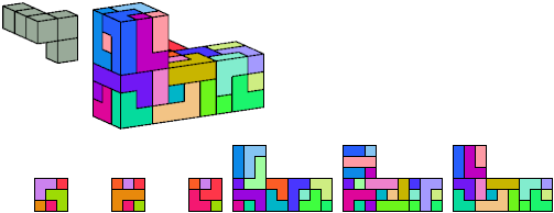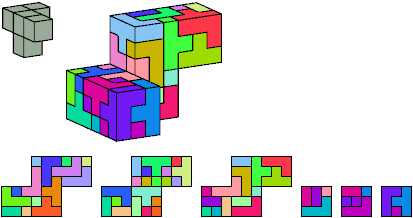 Here I show which pentacubes can tile a pentacube scaled up by a factor of two or three. If the tile is the same pentacube as that being scaled, the tiling is called a reptile. See Polycube Reptiles.
