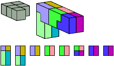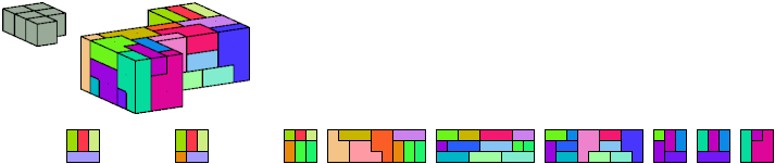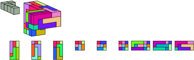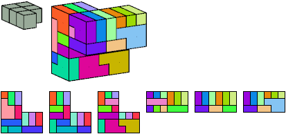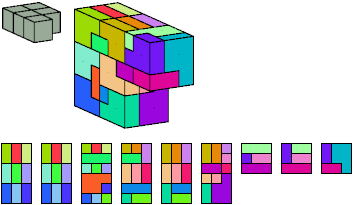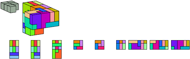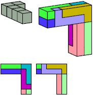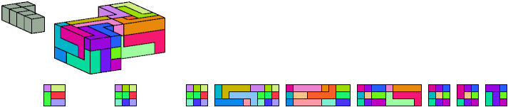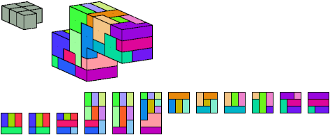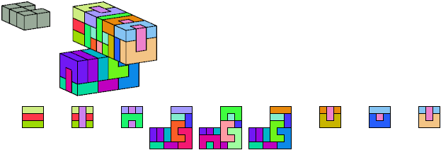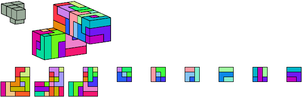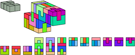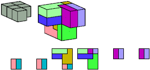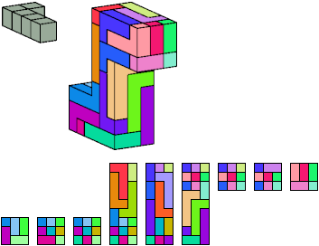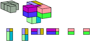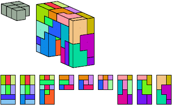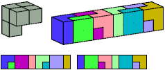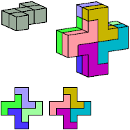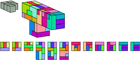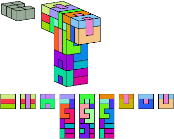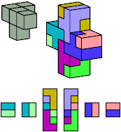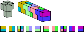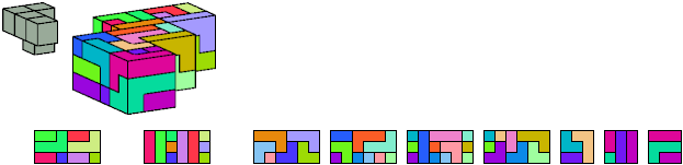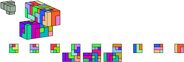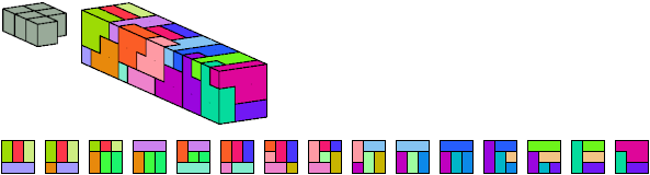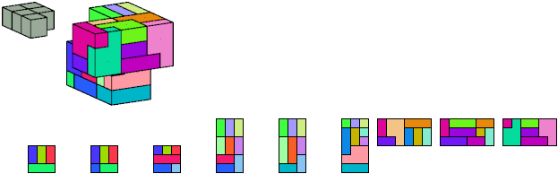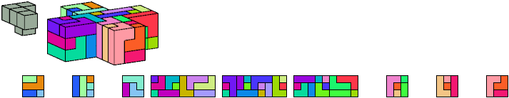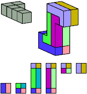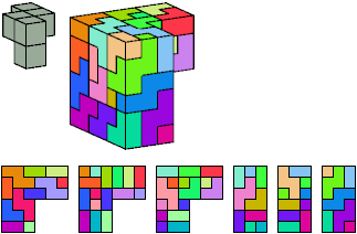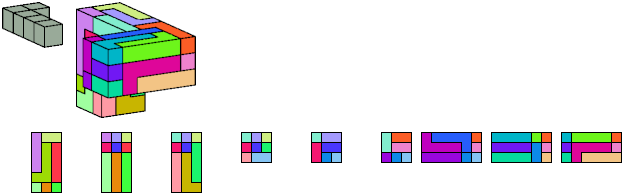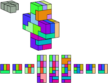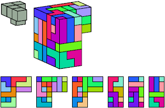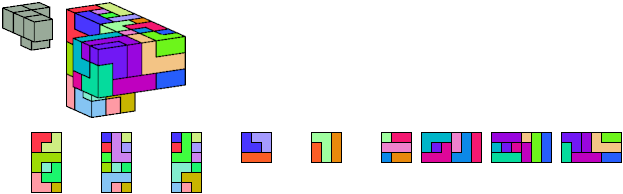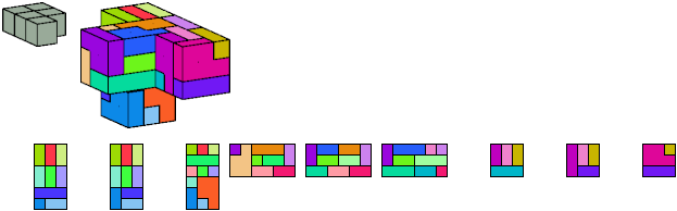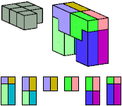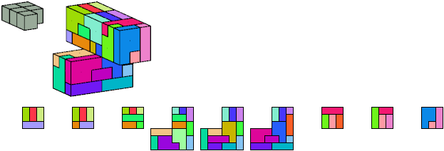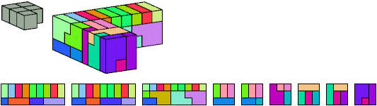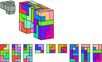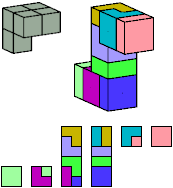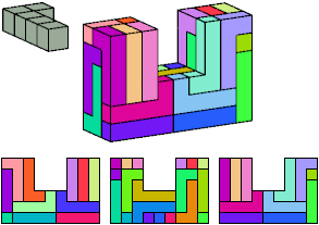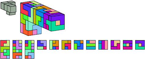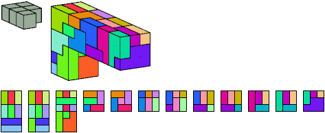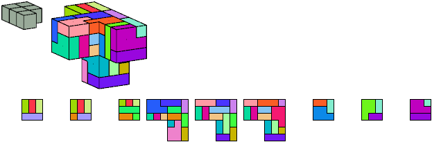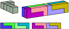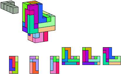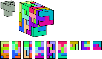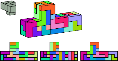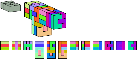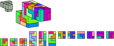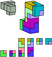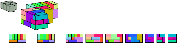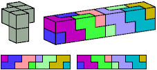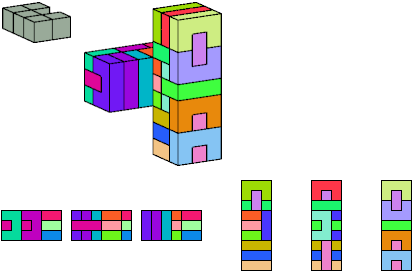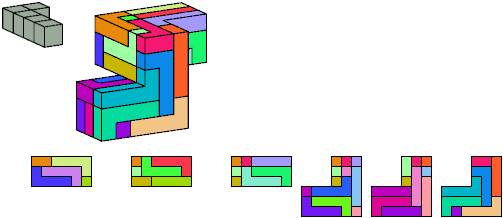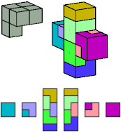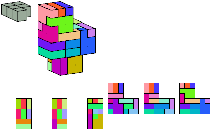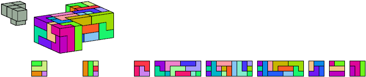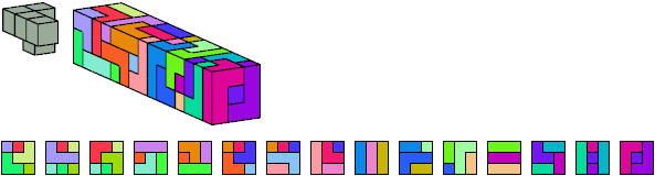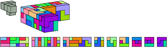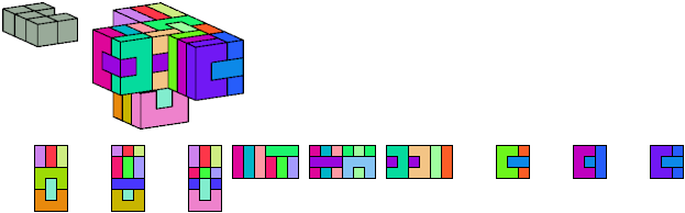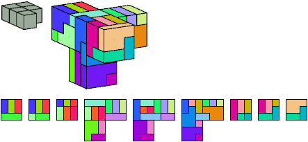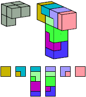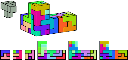 Here I show which pentacubes can tile a pentacube scaled up by a factor of two or three. If the tile is the same pentacube as that being scaled, the tiling is called a reptile. See Polycube Reptiles.