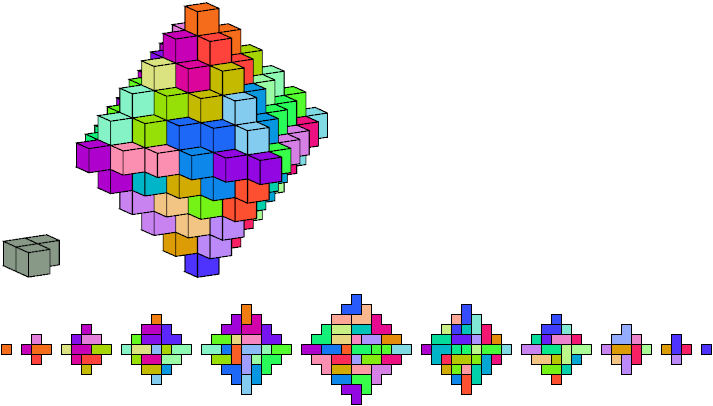 In February 2016 Xin Li sent me this solid diamond of order 6 dissected into 77 right tricubes: