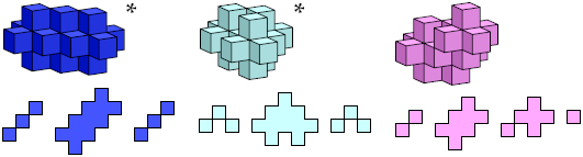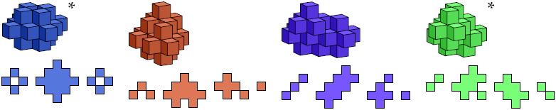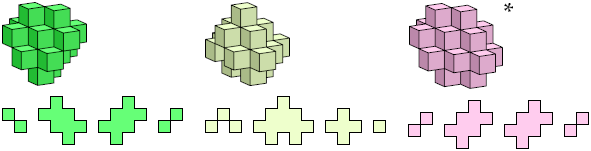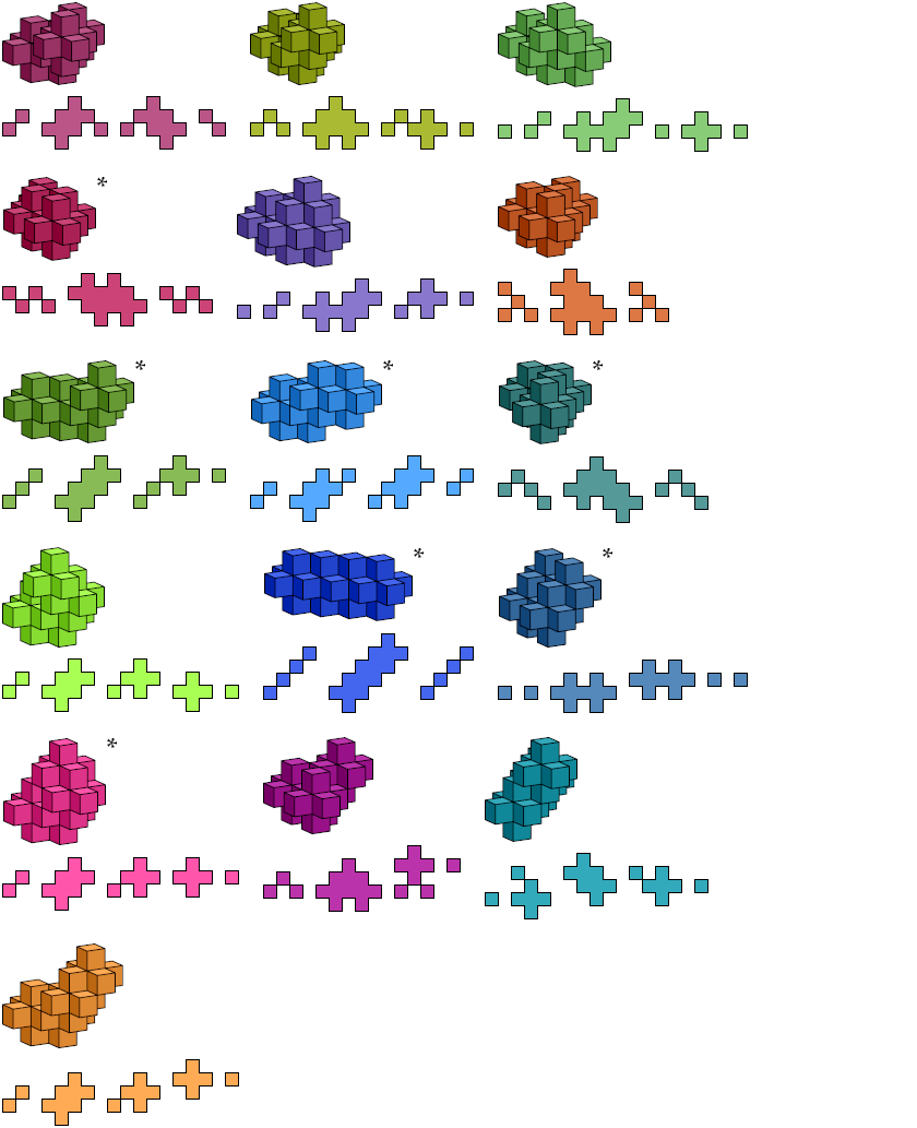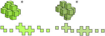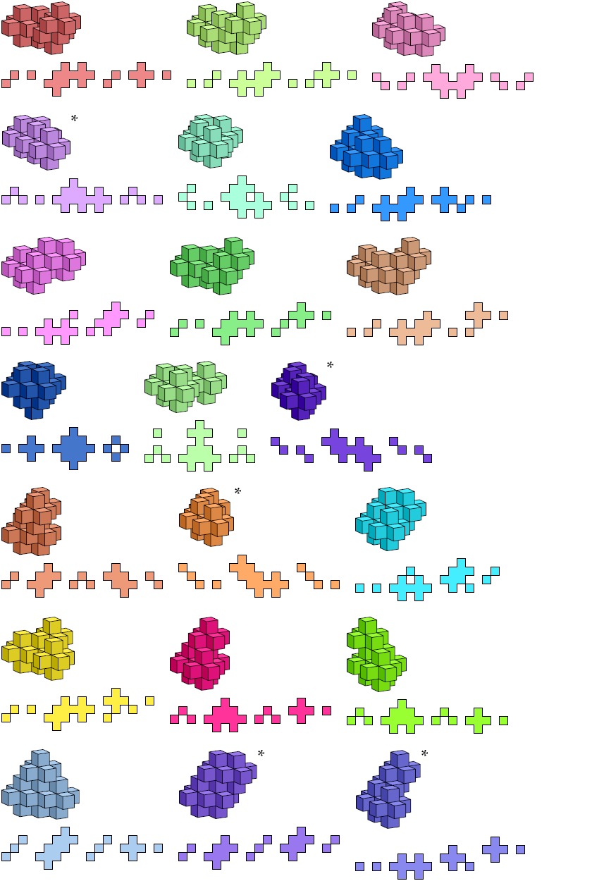 Polycubes | 1 | 1 | 1 | 1 | 1 | 3 | 2 | 2 | 3 | 4 | 16 | 21 | 19 | 24 |