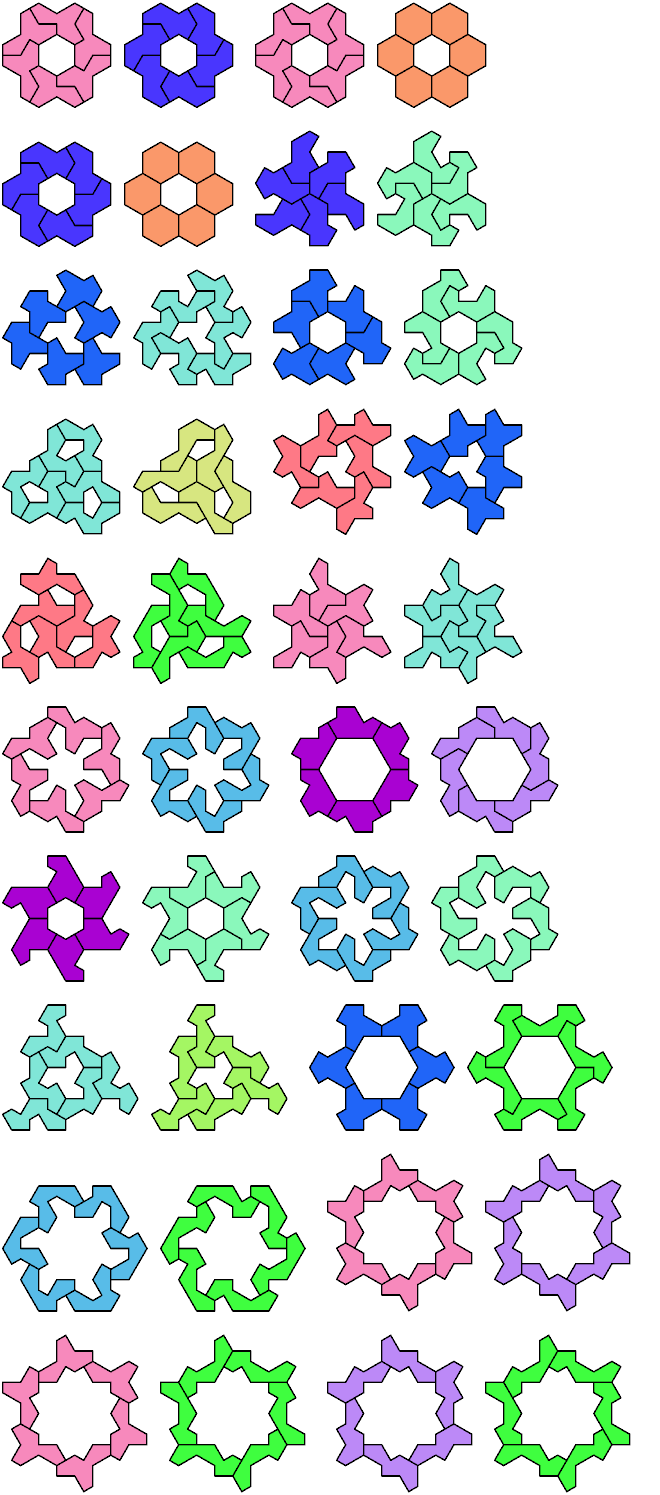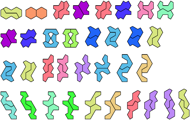 Two or more polyforms are compatible if there is a polyform that each can tile. Here are the minimal known compatibilities for trigems. Most were found by Abaroth. Please write if you find a smaller solution or solve an unsolved case.
