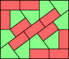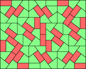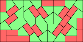 Of the 13 didoms, the Kite is unique in that it does not conform to a square grid. So any tiling that uses Kites will have grid jumps. The Brick is simply a polyomino with 2 cells, a domino. In Livio's three-grid construction above, the pieces can be joined in pairs to form 24 Kites and 26 Bricks.