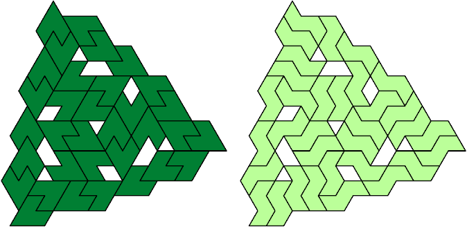 This is the smallest polyiamond with full symmetry and no holes