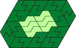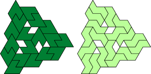 For a harder challenge, join this hexiamond to two Lobsters and to two Snakes to form identical shapes!
