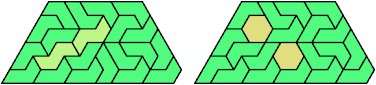Here I show the smallest known pentagonal (five-sided) polyiamonds that can be formed by copies of a pentiamond and a hexiamond, using at least one of each. If you find a smaller solution, please write.