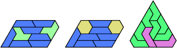 A hexiamond is a plane figure formed by joining 6 equal equilateral triangles edge to edge. There are 12 hexiamonds: