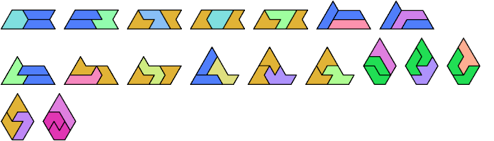 A heptiamond is a plane figure formed by joining 7 equal equilateral triangles edge to edge. There are 24 heptiamonds: