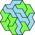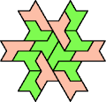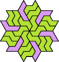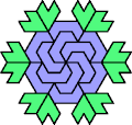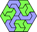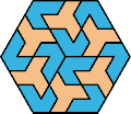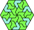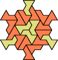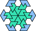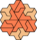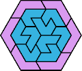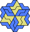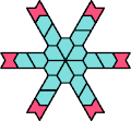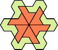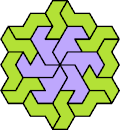 Here I show the smallest polyiamond with full symmetry and no holes that can be tiled by a hexiamond and a heptiamond, using at least one copy of each. The solutions shown are not necessarily uniquely minimal.