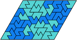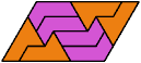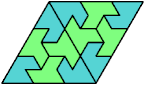 that can be formed by copies of two hexiamonds, using equally many of each.