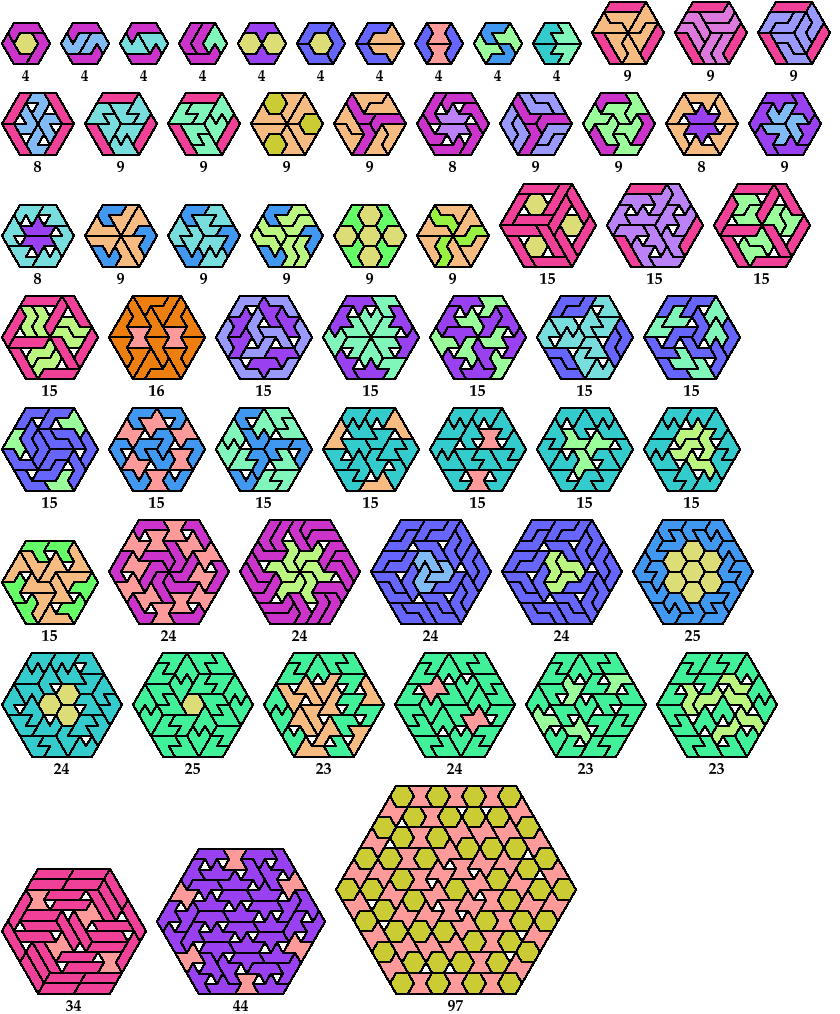 Here I show the smallest known regular hexagons that can be tiled by copies of two hexiamonds, using at least one of each, allowing one-cell holes that do not touch the perimeter or one another. If you find a smaller solution or solve an unsolved case, please write.