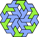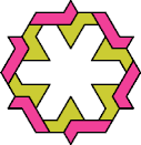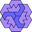 A Baiocchi Figure is an arrangement of copies of a polyform to achieve the highest symmetry class for its type of polyform. For polyiamonds, this means 12-fold symmetry, 6-rotary and mirror.