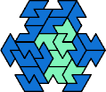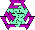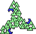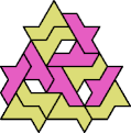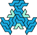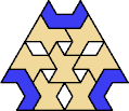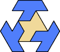 A tri-oddity is an arrangement of copies of a polyform with ternary rotary symmetry or better, using a number of copies that is not a multiple of 3.