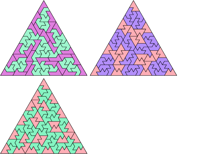 Here I show the smallest known badges that can be tiled by copies of two heptiamonds, using at least one of each. If you find a smaller solution, please write.
