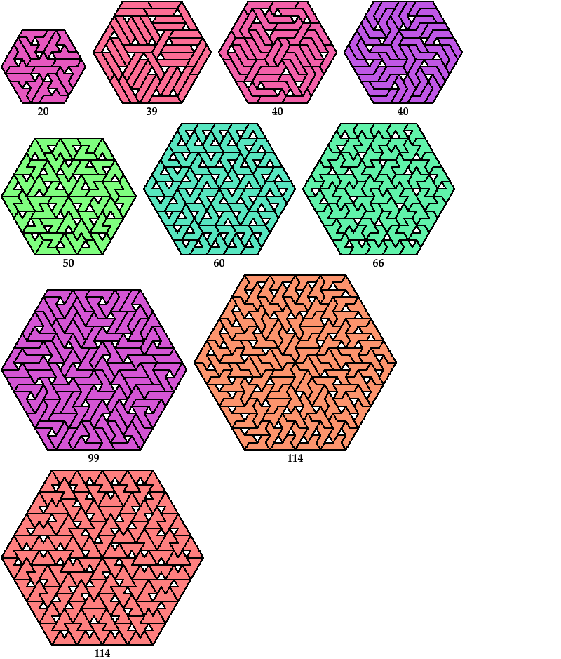 The tilings shown are not necessarily unique.