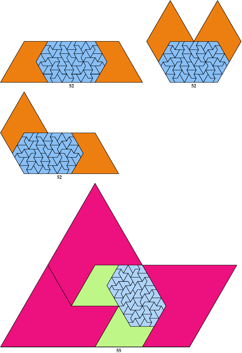 Here I show minimal known tilings of polyiamonds with 1–7 cells.