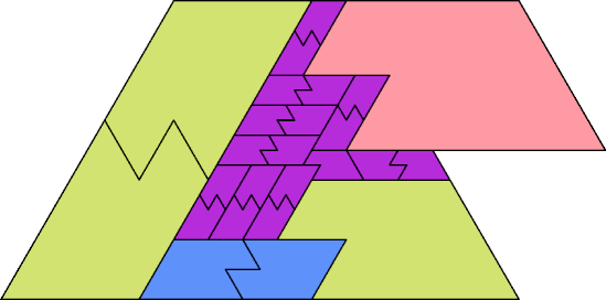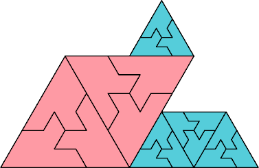 See also Polydrafter Irreptiling. For irreptilings of polyforms other than polyiamonds, see Erich Friedman's Math Magic for October 2002.