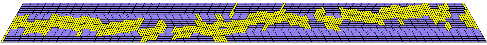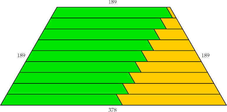 The blue trapezoid below has a slant height of 15 and bases of lengths 7 and 22. It can be extended to any greater width as shown by the yellow tiles.