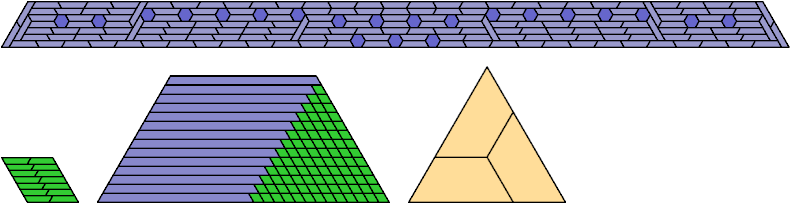 Which pairs of a hexiamond and a heptiamond can tile a triangle? Here I show some minimal tilings of triangles by copies of a hexiamond and a heptiamond.