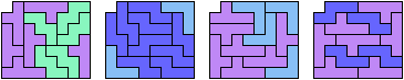 There are 12 such figures, not distinguishing reflections and rotations.